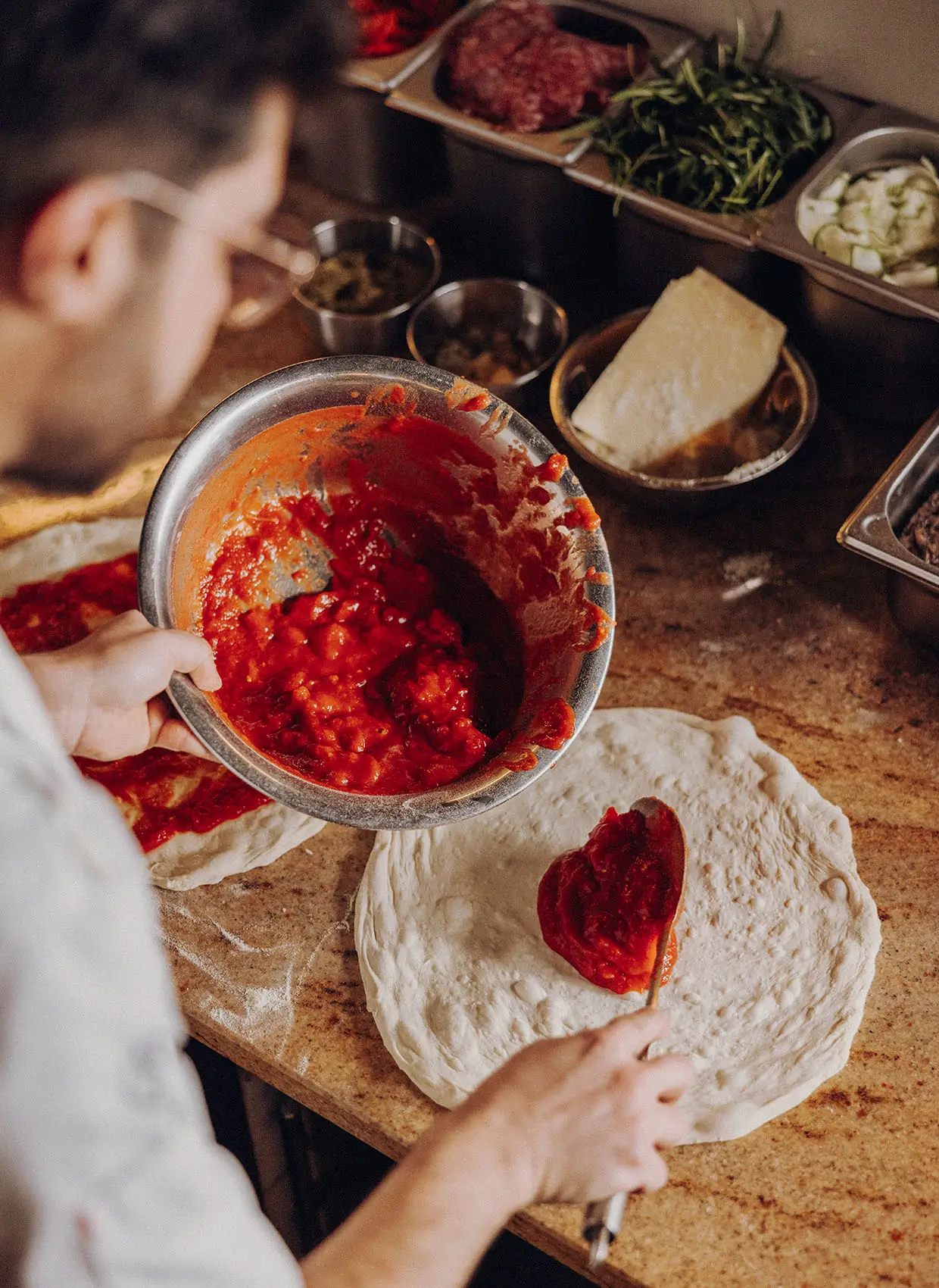Food. People. Location. Neapel. Wir haben für Napulella Amore Mio fotografiert und gefilmt – Bilder, die zeigen, was hier zählt: Handwerk, Leidenschaft und Amore. Amore für Neapel, für beste Zutaten und natürlich für Pizza. Die Echte. Die Neapolitanische. Unsere Bildwelt zeigt das Team bei der Arbeit, frische Zutaten, die Pizza im Ofen, und stimmungsvolle Momente in der Location.